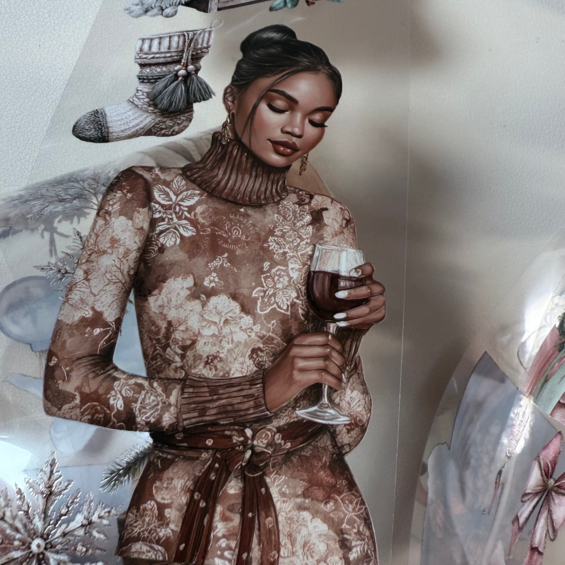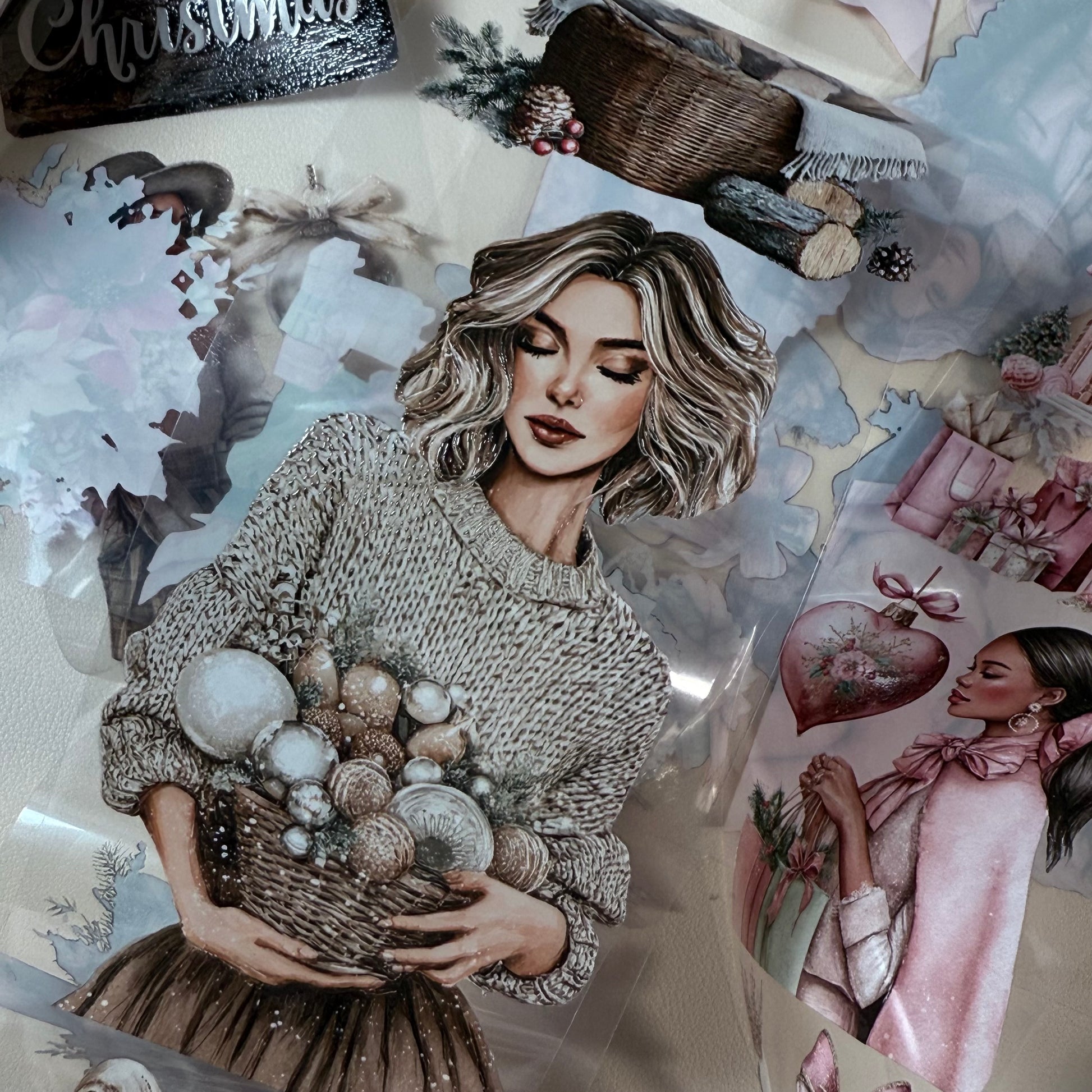 PET 3D raised Coquette and Farmhouse Christmas tape,one roll fashion, junk journal, scrapbooking,bullet journal, card making.