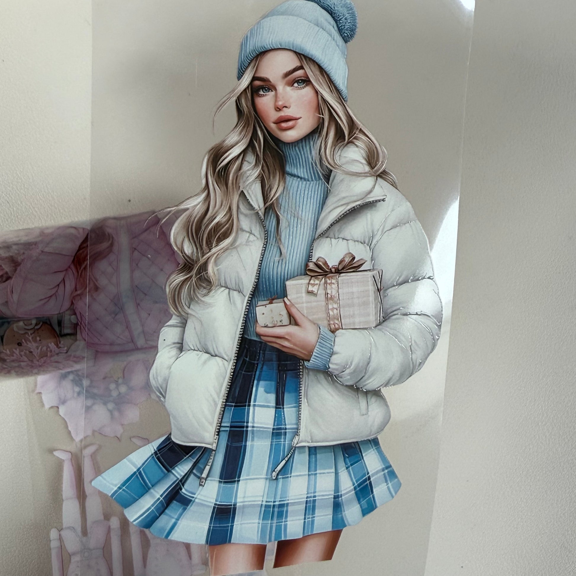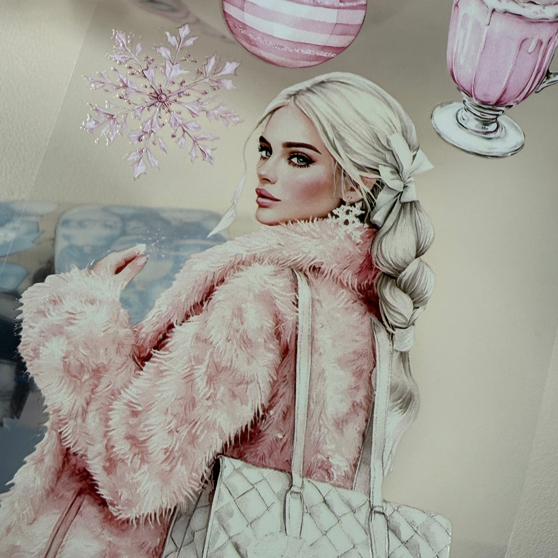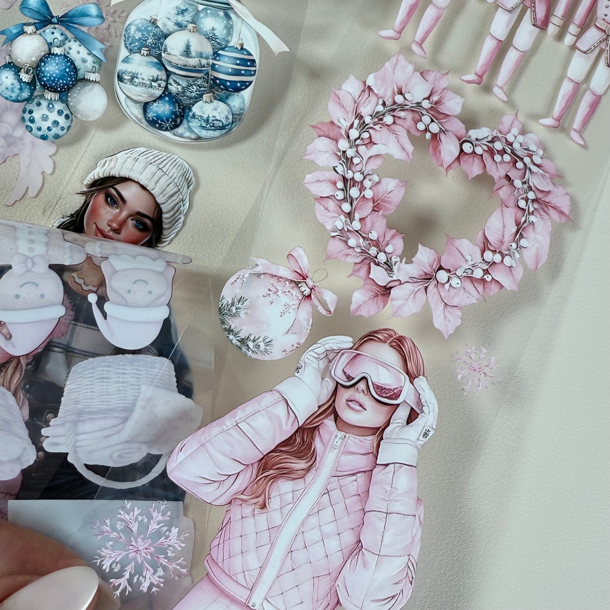 PET 3D raised Pink Glamour and Winter Stroll tape,one roll fashion, junk journal, scrapbooking,bullet journal, card making.