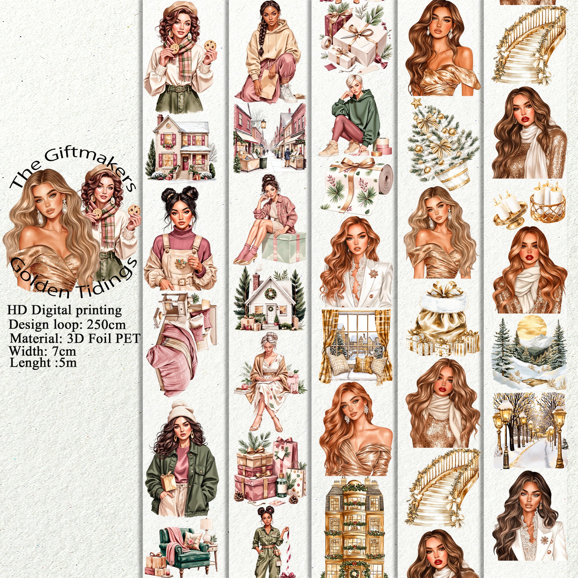 PET 3D raised The Giftmakers and Golden Tidings tape,one roll fashion, junk journal, scrapbooking,bullet journal, card making.